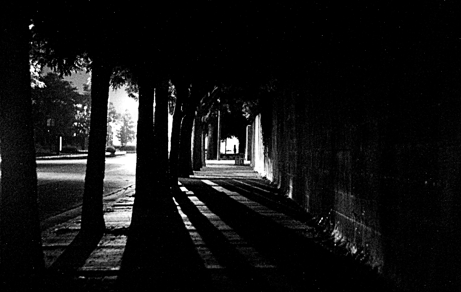 I’d come to the coffee shop in order to write about something that had happened to me a couple of nights before this incident: I’d been out with a friend and after saying good-bye was walking home along Geary Boulevard which is pretty dark at night due to the many trees blocking the light from the street lamps. Nearing the Cathedral, I realized I was the only person walking on that stretch of the street. I then saw a woman coming down the hill. When she got within about thirty feet of me she looked up and noticed me for the first time. She quickly stepped off the sidewalk and walked in the street until she’d gotten around me. I was taken aback by her action. I wanted to yell out to her, “Hey, it’s OK; I’m not going to hurt you!”